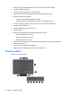 Tabuľka 1-1 Predné súčasti Súčasť Súčasť 1 Webová kamera (voliteľná) s krytom pre súkromie 7 Stlmenie reproduktora 2 Sústava dvoch mikrofónov (voliteľná) 8 Znížiť hlasitosť 3 LED kontrolka činnosti webovej kamery (pri voliteľných webových kamerách) 9 Zvýšiť hlasitosť 4 16:9 širokouhlý LCD displej s LED podsvietením 10 Stlmiť mikrofón 5 LED dióda napájania 11 Znížiť jas 6 Vysokovýkonné stereo reproduktory 12 Zvýšiť jas Dotknite sa oblasti ikony (7–12 vyššie), aby ste spôsobili rozsv