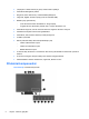 1-1 Lentelė Priekiniai komponentai Komponentas Komponentas 1 Internetinė kamera (pasirenkama) su privatumo užsklanda 7 Nutildyti garsiakalbį 2 Dvigubas mikrofono masyvas (pasirenkamas) 8 Sumažinti garsumą 3 Internetinės kameros veikimo LED (su pasirenkama internetine kamera) 9 Didinti garsumą 4 16:9 plačiaekranis LCD ekranas su LED foniniu apšvietimu 10 Nutildyti mikrofoną 5 Maitinimo LED 11 Sumažinti ryškumą 6 Aukšto funkcionalumo stereofoniniai garsiakalbiai 12 Padidinti ryškumą