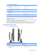 Galinio prievadų dangtelio nuėmimas ir uždėjimas Galinio prievadų dangtelio nuėmimas 1. Jei bloko gale yra įstatytas laido užraktas, nuimkite užraktą. 2. Du fiksatorius paspauskite žemyn, tada sukdami pakelkite galinį prievadų dangtelį nuo kompiuterio. 2-1 Iliustracija Galinio prievadų dangtelio nuėmimas Galinio prievadų dangtelio uždėjimas 1. Įsitikinkite, kad sujungti visi kabeliai. 2. Laikydami dangtelį prie kompiuterio (1) sulygiuokite dangtelio dešinįjį kraštą su kompiuterio dešiniuoju kraštu.