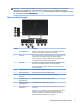 Στοιχείο Λειτουργία ΣΗΜΕΙΩΣΗ: Όταν συνδεθεί μια συσκευή στην υποδοχή ακουστικών, τα ηχεία απενεργοποιούνται. 10 Θύρα HDMI Συνδέει ένα καλώδιο HDMI με τη συσκευή πηγής. 11 Θύρα HDMI Συνδέει ένα καλώδιο HDMI με τη συσκευή πηγής. 12 Θύρα DisplayPort Συνδέει ένα καλώδιο DisplayPort με τη συσκευή πηγής. ΣΗΜΕΙΩΣΗ: Η θύρα USB 3.0 για λήψη δεδομένων που έχει δυνατότητα φόρτισης, παρέχει επίσης ρεύμα για τη φόρτιση συσκευών, όπως ένα smartphone ή ένα tablet.