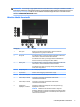 Részegység Funkció MEGJEGYZÉS: Ha egy eszköz fejhallgatóaljzathoz csatlakozik, a hangszórói nem működnek. 10 HDMI port A HDMI-kábelt csatlakoztatja a forráseszközhöz. 11 HDMI port A HDMI-kábelt csatlakoztatja a forráseszközhöz. 12 DisplayPort port DisplayPort kábelt csatlakoztatja a forráseszközhöz. MEGJEGYZÉS: A lefelé irányuló USB 3.0 töltőport árammal látja el az olyan eszközöket, mint az okostelefon vagy táblagép.