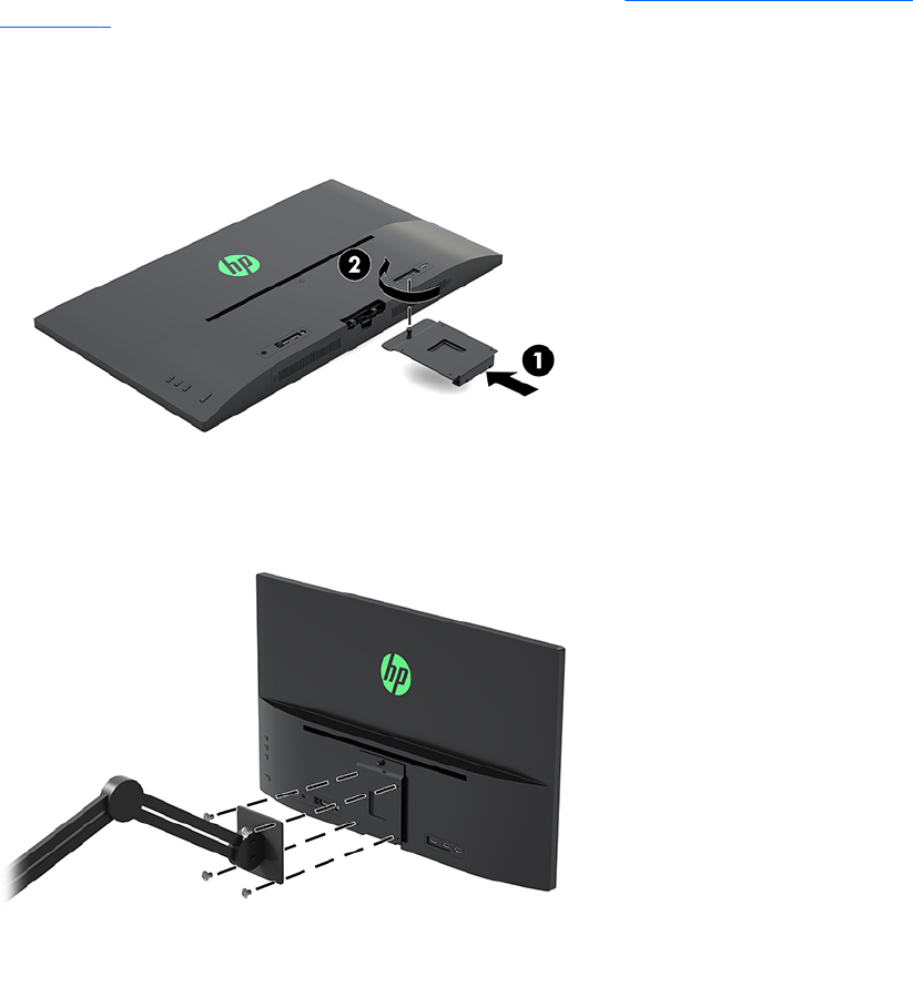 4. Pokud chcete připevnit monitor na otočné rameno nebo jiné zařízení pro montáž, vložte čtyři montážní