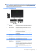 ЕСКЕРТПЕ: Қауіпсіздік және заңдық ақпарат алу үшін, құжаттама жинағында берілген Өнім туралы ақпарат бөлімін қараңыз. Пайдаланушы нұсқауының соңғы нұсқасын ашу үшін, http://www.hp.com/ support сілтемесіне өтіп, өніміңізді табу нұсқауларын орындаңыз. Сосын Руководства пользователя (Пайдаланушы нұсқаулықтары) параметрін басыңыз. Артқы және бүйір бөлшектері Құрамдас бөлшегі Функциясы 1 Мәзір түймесі Экрандық мәзірді ашу, одан мәзір тармағын таңдау немесе оны жабу үшін басыңыз.