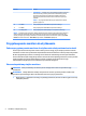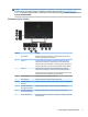 UWAGA: Informacje o bezpieczeństwie i zgodności z przepisami – patrz Informacje o produkcie dostarczone w dokumentacji. Aby uzyskać dostęp do najnowszej instrukcji obsługi, przejdź do http://www.hp.com/ support, a następnie postępuj zgodnie z instrukcjami w celu znalezienia swojego produktu. Następnie wybierz pozycję Instrukcje obsługi. Elementy z tyłu i z boku Element Funkcja 1 Przycisk Menu Naciśnij, aby otworzyć menu ekranowe, wybierz element menu z menu ekranowego lub zamknij menu ekranowe.