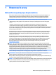 Podłączanie urządzeń USB Z tyłu monitora znajduje się jeden port USB typu upstream i dwa porty USB typu downstream. UWAGA: Aby móc korzystać z portów USB typu downstream monitora, do monitora należy podłączyć kabel USB typu upstream, którego drugi koniec jest podłączony do komputera. Szczegółowe instrukcje można znaleźć w części Podłączanie przewodów na stronie 5. Regulacja monitora Pochyl monitor do przodu lub do tyłu, aby ustawić go na wysokości odpowiedniej dla wzroku.