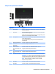 Componenti posteriori e laterali Componente Funzione 1 Pulsante Menu Premere per aprire il menu OSD, selezionare una voce del menu dall'OSD o chiudere il menu OSD. 2 Più, pulsante Se il menu OSD è attivato, premere per spostarsi in avanti nel menu OSD e aumentare i livelli di regolazione. Qualora il menu OSD fosse disattivato, premere per proseguire alla porta di ingresso successiva (DisplayPort, HDMI 1, HDMI 2).