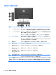 背面および側面の各部 名称 機能 1 +(プラス)ボタン 2 -(マイナス)ボタン OSD メニューが表示されているときに押すと、メニューの項目間を逆方向に移 動したり調整レベルを下げたりできます オンスクリーン ディスプレイ(OSD)メニューが表示されているときに押す と、メニューの項目間を順方向に移動したり調整レベルを上げたりできます OSD メニューが閉じているときに押すと、オーディオ メニューが開きます 3 メニュー ボタン ボタンを押すと、OSD メニューを開いたり、OSD のメニュー項目を選択した り、OSD メニューを閉じたりできます OSD メニューが表示されていないときに押すと、次のアクティブな入力コネク タ(HDMI または DisplayPort)に進みます 4 電源ボタン モニターの電源が切れているときにボタンを押すと、電源が入ります 5 電源コネクタ AC アダプターを接続します 6 USB 2.0 ポート(アッ プストリーム) 入力デバイスの USB ハブ ケーブルをモニターに接続します 7 USB 2.