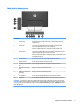 Zadní a boční komponenty Komponenta Funkce 1 Tlačítko Menu Stisknutím otevřete nabídku OSD, vyberte z nabídky OSD položku nebo nabídku zavřete. 2 Tlačítko Plus Je-li zobrazena nabídka OSD, slouží toto tlačítko k procházení vpřed funkcemi nabídky OSD a ke zvýšení úrovní nastavení. Pokud není nabídka OSD aktivní, stisknutím otevřete nabídku zvuku. 3 Tlačítko Minus Je-li zobrazena nabídka OSD, slouží toto tlačítko ke zpětnému procházení funkcemi nabídky OSD a ke snížení úrovní nastavení.