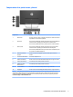 Componentes de la parte trasera y lateral Componente Función 1 Botón Menú Presione para abrir el menú en pantalla, seleccionar un elemento del menú en pantalla o cerrar el menú en pantalla. 2 Más, botón Si el menú en pantalla está activado, púlselo para navegar hacia adelante a través del menú en pantalla y para aumentar los niveles de ajuste. Si el menú en pantalla está inactivo, presione para abrir el menú de audio.