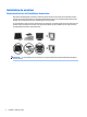 Branchement des câbles REMARQUE : Le moniteur est livré avec certains câbles. Tous les câbles mentionnés dans cette section ne sont pas forcément fournis avec le moniteur. 1. Placez le moniteur près de l'ordinateur, dans un endroit pratique et bien ventilé. 2. Connectez un câble vidéo. REMARQUE : Les entrées recevant un signal vidéo valide sont détectées automatiquement par l'écran.