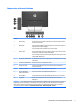 Composants arrières et latéraux Élément Fonction 1 Bouton Menu Permet d'ouvrir le menu OSD, de sélectionner un élément du menu OSD ou de fermer le menu OSD. 2 Bouton Plus Si le menu OSD est affiché, permet de naviguer en avant dans les options et d'augmenter le niveau des réglages. Si le menu OSD est inactif, permet d'ouvrir le menu audio. 3 Bouton Moins Si le menu de réglage à l'écran est affiché, permet de revenir en arrière dans les options et de diminuer le niveau des réglages.