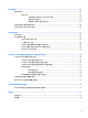 앞면 12 오른쪽 3 왼쪽 4 윗면 6 규정 정보 규정 레이블 78 무선 인증 레이블 78 기능 키, 식별 10, 11 기업용 WLAN 연결 17 ㄴ 내장 마이크, 식별 5 내장형 숫자 키패드, 식별 네트워크 잭, 식별 3 10, 27 ㄷ 도킹 커넥터, 식별 4, 12 두 손가락 핀치 확대/축소 터치패드 제스처 22 드라이브 광 50 사용 51 외장 50 취급 51 하드 50 드라이브 미디어 39 드라이브 표시등 13, 53 디스크 정리 소프트웨어 52 디스크 조각 모음 소프트웨어 52 디스플레이 이미지, 전환 26 ㄹ 레거시 지원, USB 70 레이블 Bluetooth 78 Microsoft 정품 인증서 78 WLAN 78 규정 78 무선 인증 78 일련 번호 78 ㅁ 마우스, 외장 기본 설정 지정 20 마이크(오디오 입력) 잭, 식별 3 마이크 음소거 표시등, 식별 7, 8 메모리 카드 39 분리 46 장착 46 지원되는 형식 46 메모리 카드 리더, 식별 3 무선 버튼 14 무선 안테나, 식별