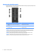 Komponenty předního panelu Konfigurace jednotky se může u jednotlivých modelů lišit. Některé modely jsou vybaveny záslepkou, která zakrývá tenkou pozici pro optickou jednotku. 1 Indikátor činnosti pevného disku 6 Tlačítko režimů napájení 2 Pozice pro jednotku 5,25 palce s poloviční výškou (za panelem) 7 Optická jednotka Slim (volitelně) 3 Čtečka karet SD (volitelná) 8 Nabíjecí (napájený) port USB 2.0 (černý) 4 Port USB 2.0 (černý) 9 Porty USB 3.