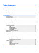 Table of contents 1 Product features ........................................................................................................................................... 1 Standard configuration features ........................................................................................................................... 1 Front panel components .......................................................................................................................................