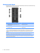 Komponen panel belakang 1 Soket Kabel Daya 7 Konektor Mouse PS/2 (hijau) 2 Konektor Keyboard PS/2 (ungu) 8 Konektor Serial 3 Konektor Monitor DisplayPort 9 Konektor Jaringan RJ-45 4 Konektor Monitor VGA 10 Port USB 3.0 dengan Wake dari fitur S4/S5 (biru) 5 Port USB 3.0 (biru) 11 Konektor Audio Line-In (biru) 6 Konektor Line-Out untuk perangkat audio (hijau) CATATAN: HP menyediakan port serial kedua opsional dan port paralel opsional.