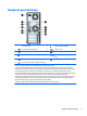 Komponen panel depan Konfigurasi drive bisa beragam tergantung pada model. Beberapa model tertentu memiliki bezel kosong yang melindungi satu atau lebih tempat drive. 1 Lampu Aktivitas Hard Drive 6 Tombol Daya Fungsi Ganda 2 Tempat Drive Half-Height (Tinggi Setengah) 5,25 inci (di belakang bezel) 7 Drive Optik Tipis (opsional) 3 Pembaca Kartu SD (opsional) 8 Port Pengisian USB 2.0 (dialiri daya) (hitam) 4 Port USB 2.0 (hitam) 9 Port USB 3.