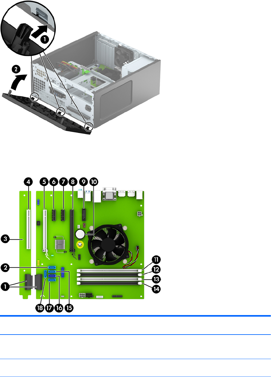 Сведения о разъемах системной платы вашей модели см. на следующем рисунке и в таблице.