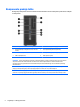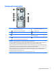 Komponente prednje table Konfiguracija disk jedinice zavisi od modela. Na nekim modelima ravna maska pokriva jedan ili više odeljaka za disk jedinicu. 1 Svetlo koje označava aktivnost čvrstog diska 6 Dvonamensko dugme za napajanje 2 Poluvisoki odeljak za disk jedinicu od 5,25 inča (iza maske) 7 Tanka optička disk jedinica (opcionalna) 3 Čitač SD kartica (opcionalni) 8 USB 2.0 port za punjenje (sa napajanjem) (crni) 4 USB 2.0 priključak (crni) 9 USB 3.