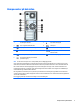 Komponenter på frontpanelen Enhetskonfiguration kan variera beroende på modell. Vissa modeller har ett panelskydd som täcker ett eller flera enhetsfack. 1 Aktivitetslampa för hårddisk 6 Strömbrytare med två lägen 2 5,25-tums enhetsfack, halva höjden (bakom täckram) 7 Optisk enhet, Slim-modell (tillval) 3 SD-kortläsare (tillval) 8 USB 2.0-laddningsport (strömdriven) (svart) 4 USB 2.0-port (svart) 9 USB 3.