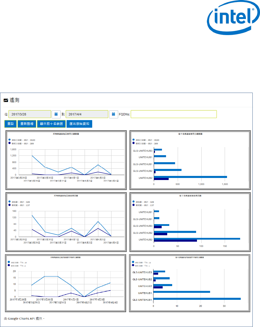 此頁面顯示管理入口網站收集的遙測資料,為了檢視這些資料,必須安裝 Intel Unite® 解決方案的遙測外掛程