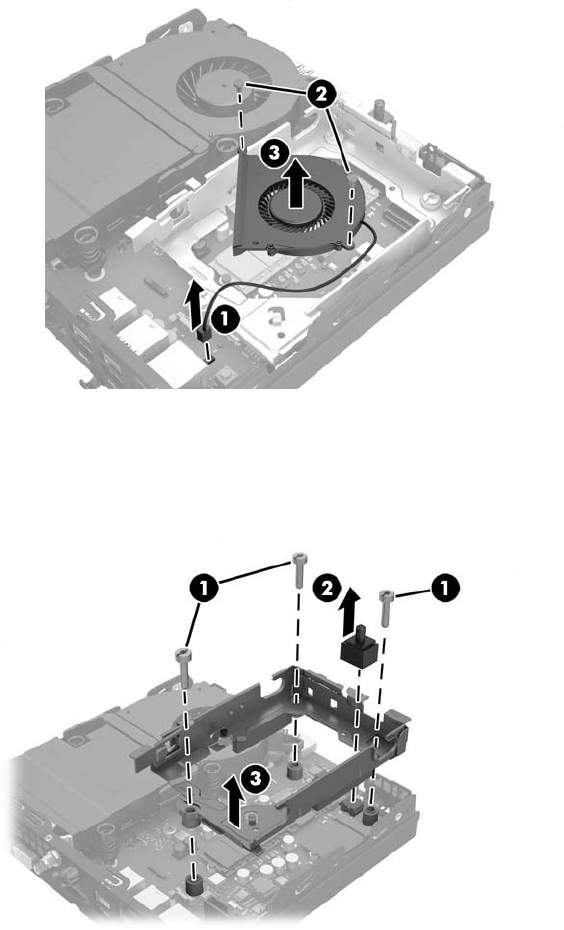 11. Ta bort de tre skruvarna som håller hårddiskens hållare i chassit (1).