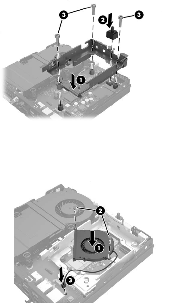 a. Sätt i fläkten på plats i hårddiskens hållare (1).