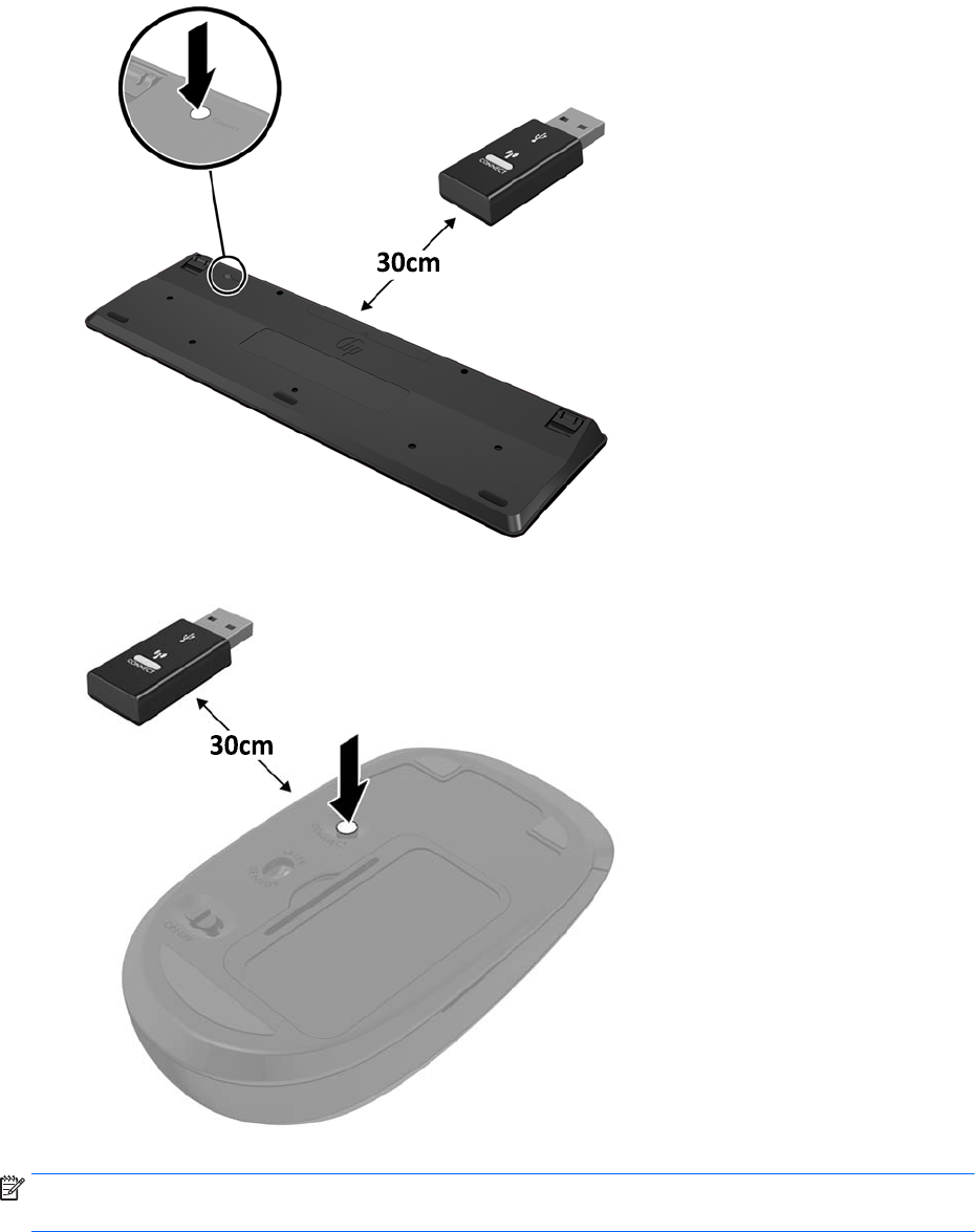 OBS! Om musen och tangentbordet fortfarande inte fungerar, ska du ta ur och byta batterierna. Om musen