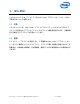 法務情報および免責事項、著作権 本資料に記載されたすべての情報は、予告なく変更されることがあります。 インテル® 製品の最新の仕様およびロードマップをご希望の場合は、インテ ルの担当社員までご連絡ください。 インテル® テクノロジーの機能と利点はシステム構成によって異なり、対応 するハードウェアやソフトウェア、またはサービスの有効化が必要となる場 合があります。実際の性能はシステム構成によって異なります。絶対的なセ キュリティーを提供できるコンピューター・システムはありません。詳細に ついては、各システムメーカーまたは販売店にお問い合わせいただくか、 www.intel.co.