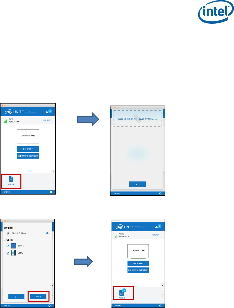 Intel Unite 응용 프로그램을 사용하여 파일을 전송하려면: