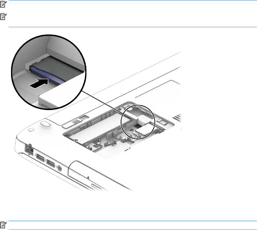 PASTABA: jei akumuliatoriaus neįdėsite, HP mobilusis plačiajuostis ryšys neveiks.