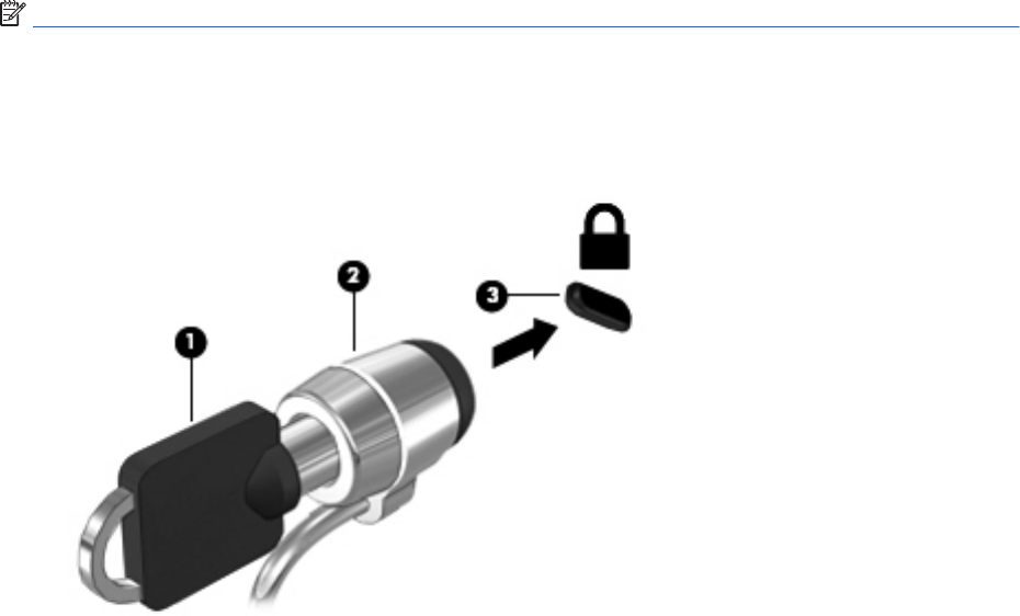 PASTABA: jūsų kompiuterio apsauginio kabelio lizdas gali šiek tiek skirtis nuo šio skyriaus iliustracijos.