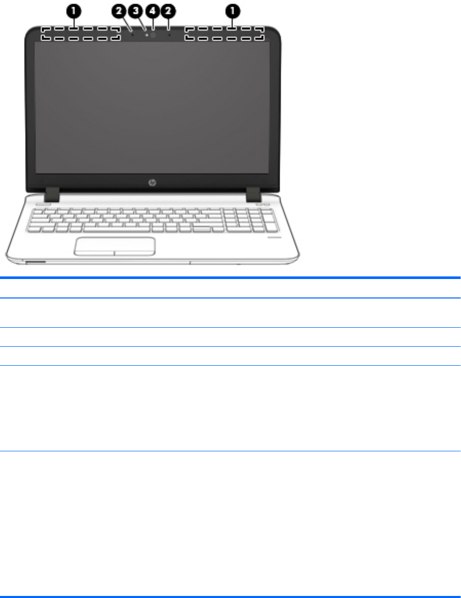 (4) Webkamera (kun på enkelte produkter) Brukes til å spille inn video og ta bilder. Enkelte modeller gir mulighet