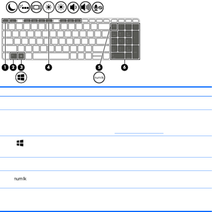 (5) num lock-tast Slår den integrerte numeriske tastgruppen på og av.