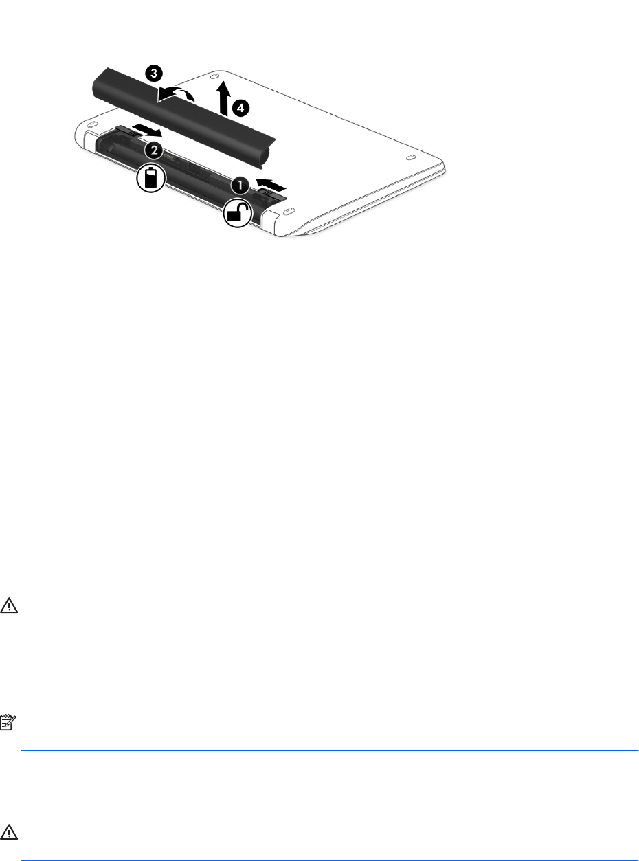 3. Vipp batteriet (3) opp og ta batteriet ut av datamaskinen (4).