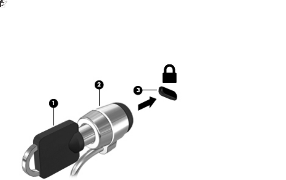 3. Sett kabellåsen i festet for tyverisikringskabelen (3) på datamaskinen, og lås deretter kabellåsen med