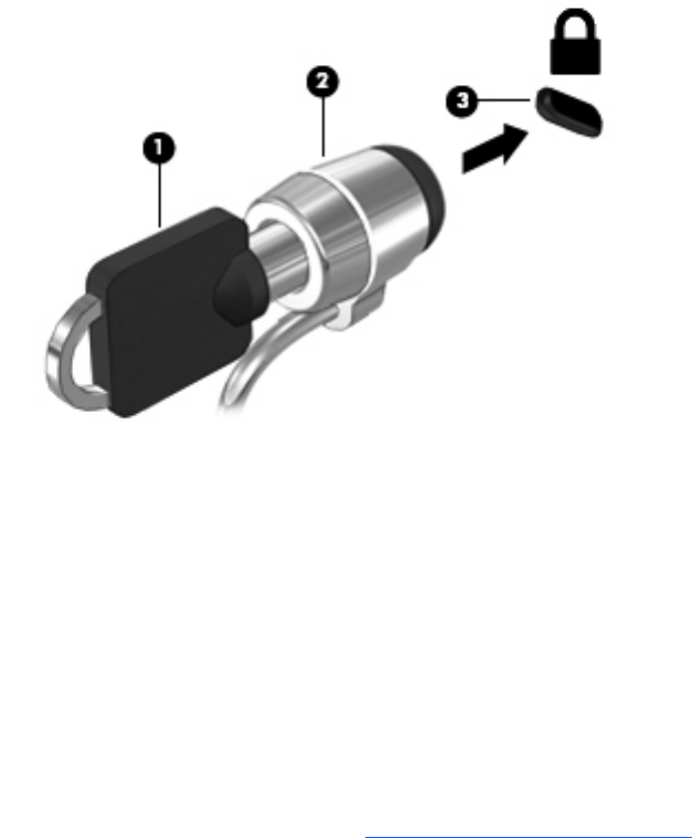 3. Sæt kabellåsen i sikkerhedskabelslotten på computeren (3), og lås derefter kabellåsen med nøglen.