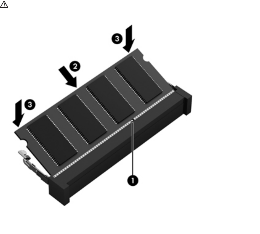 c. Tryk forsigtigt ned på hukommelsesmodulet (3), idet du trykker på både venstre og højre kant af