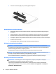 3. Palenkite akumuliatorių (3) į viršų ir išimkite jį (4) iš kompiuterio.