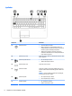 (3) Lysdiode for webcam (kun udvalgte produkter) Tændt: Webcam er i brug.