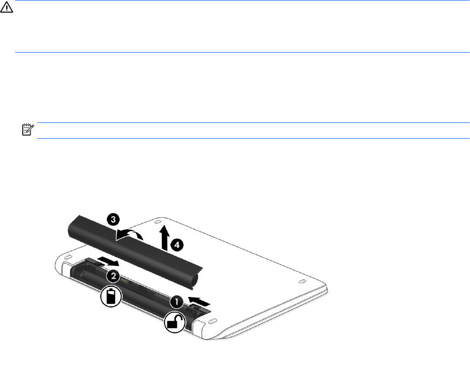 3. Ανασηκώστε την μπαταρία (3) και, στη συνέχεια, αφαιρέστε την (4) από τον υπολογιστή.