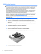 11. Csúsztassa az új SODIMM modult a foglalatba körülbelül 30°-os szögben (1), majd nyomja le a SODIMM