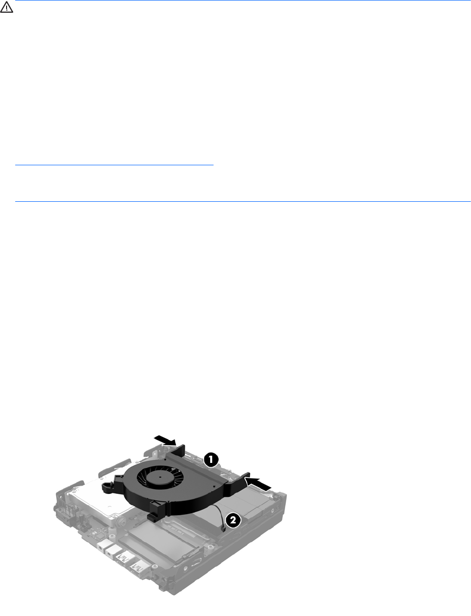 8. Изключете куплунга на вентилатора от дънната платка (2), след което повдигнете и извадете