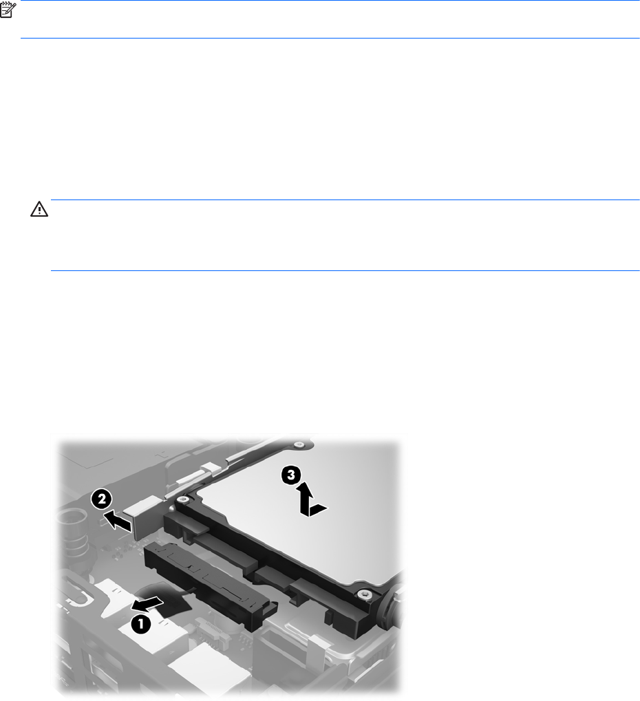 8. Издърпайте лоста за освобождаване, разположен до задната част на твърдия диск, настрани от