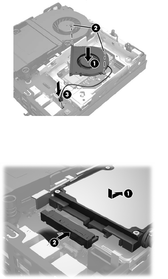 25. Свържете захранването и кабела за данни (2) към твърдия диск.