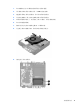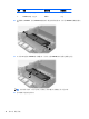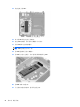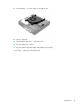 8. 拔出 HDD 背面旁边的释放杆 (2)。在将释放杆拔出时,向后滑动驱动器直至无法滑动,然后向上提起