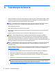 uma das bordas da bateria. Quando a bateria se soltar, retire-a (1).