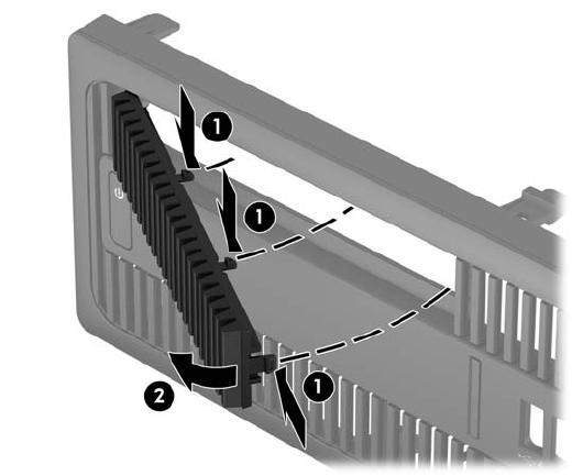 die die Leerblende befestigen, nach innen (1), und drehen Sie dann die Leerblende von der Frontblende