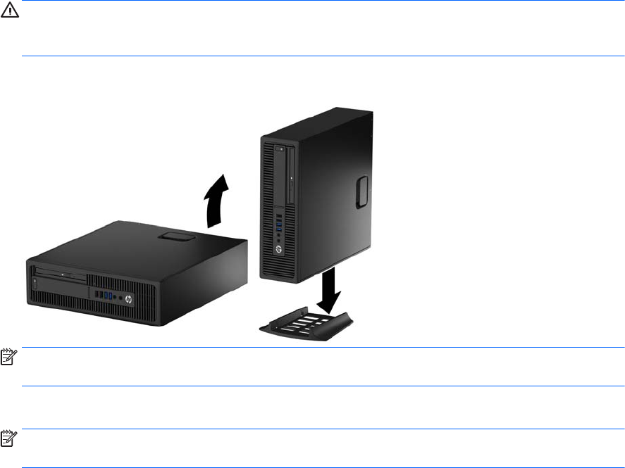 Der Small Form Factor-PC kann mit einem optionalen Tower-Standfuß, der bei HP erhältlich ist, als Tower-