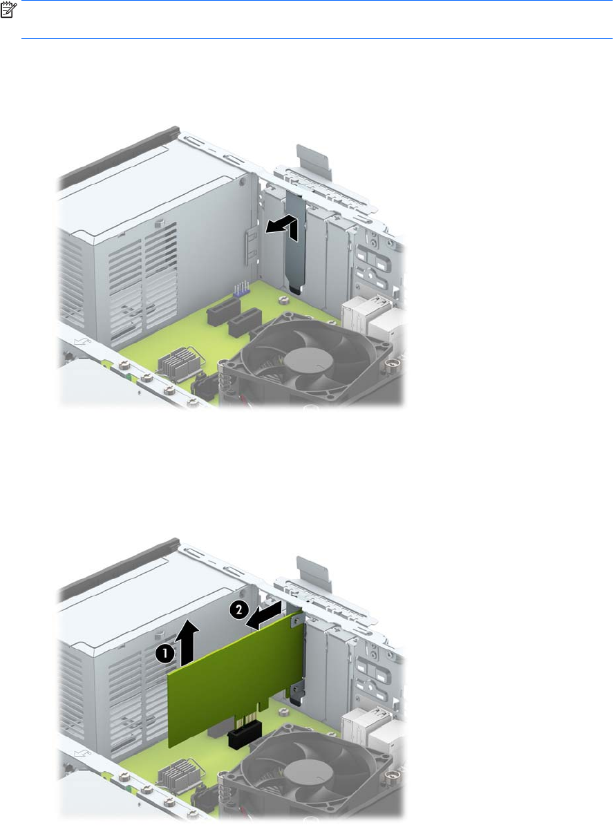Erweiterungskarte geradeaus nach oben aus dem Steckplatz (1) und dann vom Innern des