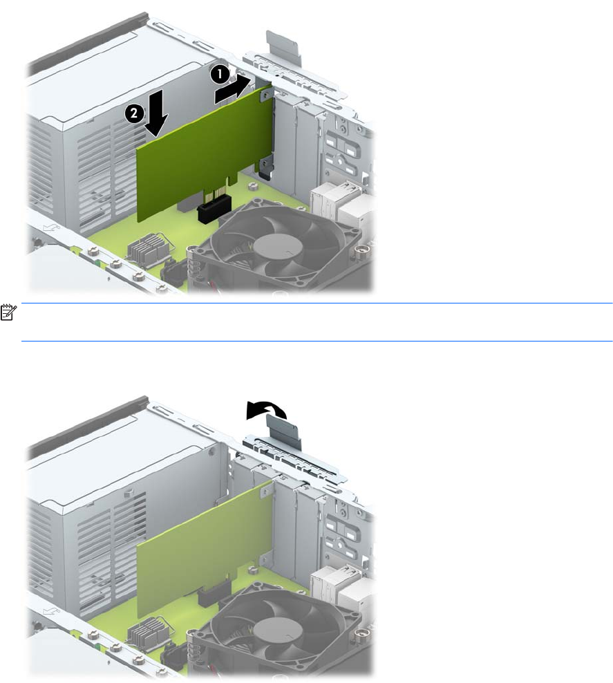 13. Schließen Sie die Verriegelung der Steckplatzabdeckung wieder, um die Erweiterungskarte zu sichern.